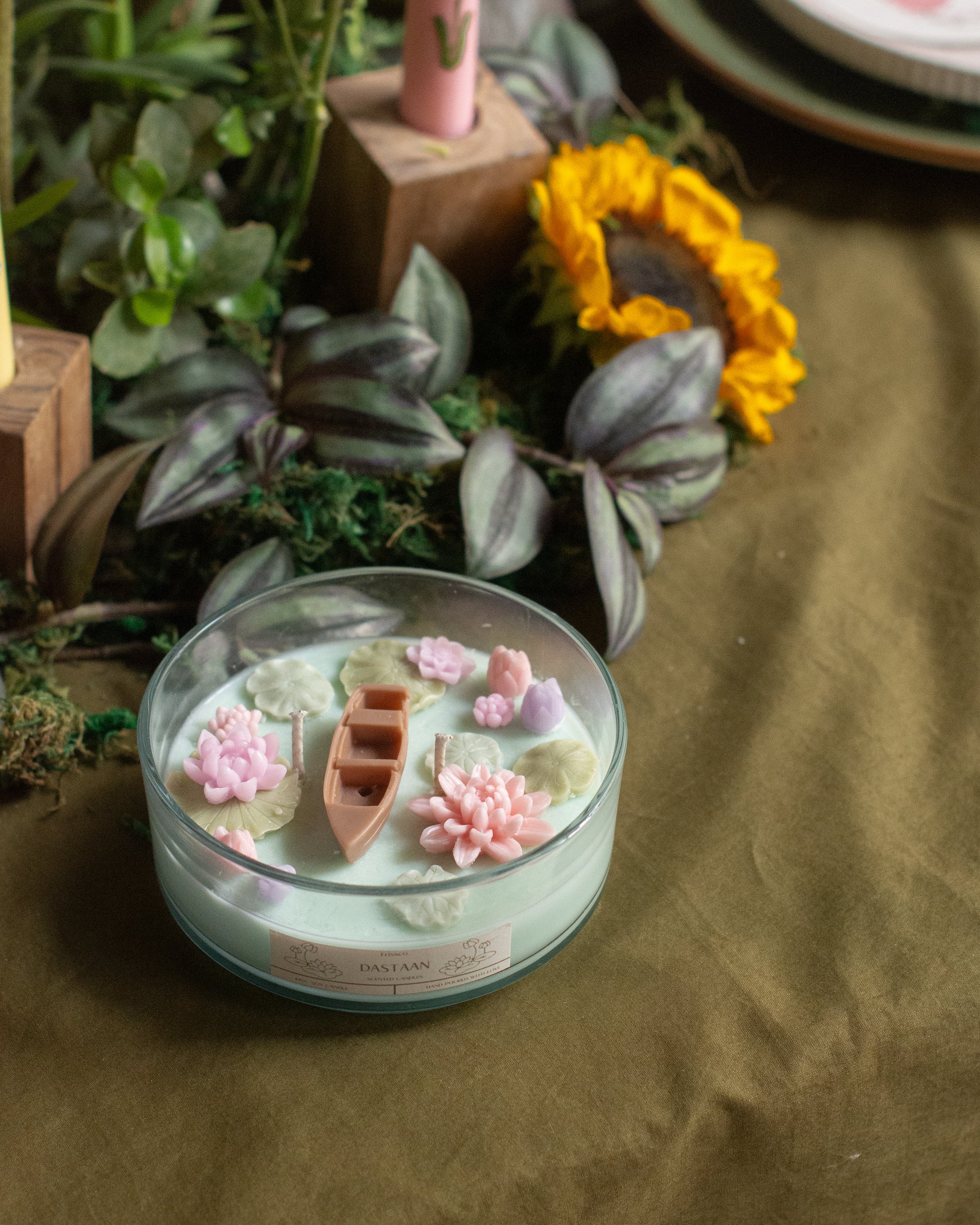 “Lotus Lake”Candle, now with a tiny boat! 🚤